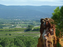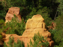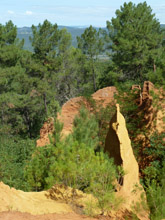 Over op plan B, Roussillon en dan de okerrotsen daar gaan zien. Zullen ze heel veel anders zijn dan bij Rustrel? We lopen in Rousillon iets omhoog door enkele straatjes en zijn verrast hoe mooi het is. De okerrotsen vallen meteen op. Het wandelpad loopt via een mooie houten trap naar beneden. |