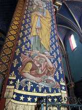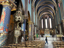De abdijkerk in en dat is wel iets wat je niet mag missen. Zo kleurrijk! De pilaren zijn allemaal van boven tot onder beschilderd. Ook het plafond