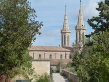 Twee spitse torens vallen op. Het is een groot kloostercomplex dat gesticht werd rond 960.