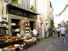 Omdat de meeste toeristen iets eten of drinken zijn de winkelstraatjes minder vol… dat is wel prettig, dan zie je tenminste iets. Leuke kledingwinkeltjes en veel snuisterijen te koop. Wij hebben meer oog voor de geveltjes, vaak begroeid met klimplanten. Lourmarin behoort tot de mooiste dorpjes van Frankrijk. De winkeltjes, kunstgalerijen, exposities en de culturele bezienswaardigheden maken dit kleine dorpje net even anders. |