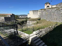 In Besançon is het 26 graden en volop zon. We benutten de rest van de middag om de citadel hier te gaan bekijken. We parkeren op een terrein en met een bus kunnen we mee naar de citadel, een rit van 7 min. die best wel steil omhoog gaat. De chauffeur stuurt behendig door enkele zeer smalle bochtige straatjes. De Citadel van Besançon is een 11 hectare grote vesting. Gebouwd tussen 1668 en 1711. De citadel is gelegen op een van de zeven heuvels die de stad beschermen. |