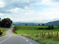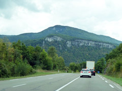Fijne hotelkamer en een hele prettige badkamer met een goede douche. Ontbijt is prima, alleen valt er niets mee te nemen voor onderweg. Ons volgend doel is Chambéry. Het is nat buiten en dat zal de hele dag wel zo blijven is de voorspelling. Onze route gaat verder over de N 83 richting Arbois. Daar is een waterval. Maar ja… om nu terwijl het regent nog meer nattigheid op te zoeken is niet ons ding. We passen de route aan en koersen naar Lons-le-Saunier en Orgellet over de D 470. Deze route door de Jura halen we uit een reisboek. Door enkele mooie dorpjes en mooie landschappen. Over de D 27 naar Oyonnax en richting Annecy. Dit gebied herkennen we van een eerder bezoek aan de Franse Alpen. Over de A 40 met veel tunnels. Bij een wegrestaurant drinken we koffie en eten een koek. Vervolgens rijden we langs een groot meer waar de plaats Aix-les-Bains aan ligt. De zon piept soms door de bewolking heen, maar de bergen zijn nog wel in de mist gehuld. |