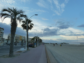 | 's Avonds lopen we in 5 min. naar de boulevard en slenteren verder langs de kust. De boulevard is lang, het strand is breed en er is een draaimolen en enkele kermisachtige kraampjes. Op een plein met terrassen eten we bij Le France. Naar fotoblad Canet Plage. |