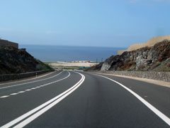 Via de kustweg TF 47 rijden we naar huis.