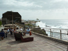 La Arena is de eerste stop. We ontdekken een voetpad langs de kustlijn. De golven zijn enorm hoog en klotsen tegen de rotsen.