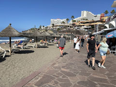 Wij wandelen nog verder door Costa Adeje. Langs de rode vuurtoren, Playa La Pinta en Playa de Torviscas.
