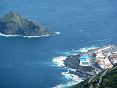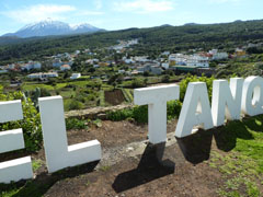 Er staan letters van de plaats in de berm. Je hebt er zicht op de zee en op de kustplaats Garachico, maar ook op de vulkaan.