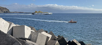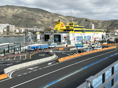 Later in de middag wandelen we naar de pier van Los Cristianos. De Fred Olsenboot wordt intussen geladen. We zien dat de voertuigen achteruit de