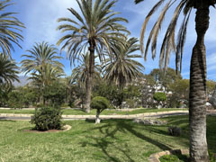 In de middag wandelen we naar het parkje en vandaaruit richting de kust. We komen bij de gebouwen in Kasbah stijl. Een leuk binnenpleintje met