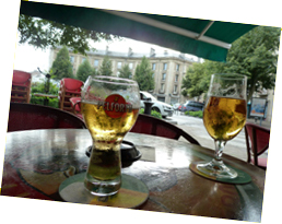 We besluiten eens rond te gaan lopen door Toul en gaan de trap af. Nu is de receptie wel open. Toul is een plaats van vergane glorie. Er wonen ca. 18.000 mensen. In de wijk waar wij lopen zijn bijna alle gebouwen hard aan een nieuwe verflaag toe. Het is een beetje troosteloos. Er zijn veel bouwvallige woningen, maar ook een grote kathedraal (Cathédrale St-Etienne) en twee kapellen. De winkels zijn natuurlijk dicht en maar een enkele kroeg is open, die vind je hoofdzakelijk aan het plein bij ons hotel. We ploffen neer op een terras en drinken een biertje. Bij een Chinees restaurant eten we een omelet met groente en kip met curry en rijst plus een Chinees biertje erbij. We zijn vroeg op de kamer terug als het weer gaat regenen. Herman stopt alvast een euro parkeergeld in de automaat voor morgenochtend. Om kwart voor negen is het al bijna donker.