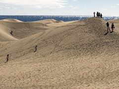 we naar de duinen wandelen. Over de boulevard want de wind is te krachtig. De duinen van Maspalomas is een uniek stuk natuurreservaat.