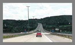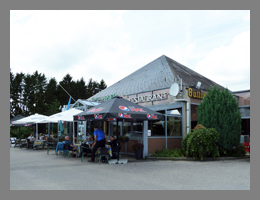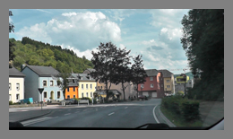 Wil weet een plaats waar we waarschijnlijk wel koffie kunnen drinken en ook enkele boodschappen kunnen doen. In Marbourg of Marnach dat is op de wegenkaart een beetje onduidelijk, maar… we komen er. Twee keer linksaf en we zijn op een terrein met een brasserie, supermarkt, tankstation en nog enkele zaken. Prima. Eerst naar de brasserie. Buiten op het terras drinken we dan eindelijk koffie. Dat gaat er goed in. Het vakantiegevoel wordt steeds groter. |