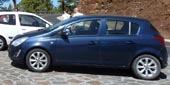 straat gestuurd waar alle huurauto's staan. In de miezerregen lopen we onnodig naar een plek waar de Opel Corsa moet staan die ons is toegewezen.