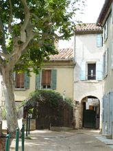 Via een mooi stukje weg noordwaarts naar Barbentane. Daar drinken we koffie en delen een salade waar veel rauwe rode kool in zit. Beetje te dik gesneden. Verder is de salade prima met spekjes, ei en tomaat. Barbentane is niet zo bijzonder. Veel houtwerk van de huizen mag wel eens geverfd worden, maar dat is in heel Frankrijk het geval. |