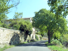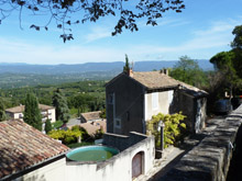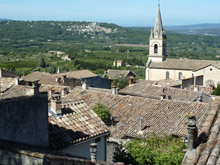 We hebben een rondrit op het oog met een bezoekje aan de plaats Lourmarin. Eerst naar het oosten, richting Bonnieux. Als we die streek bereiken, kunnen we de plaats Lacoste zien liggen met het chateau op de top. Daar waren we eerder. In Bonnieux is het druk. Gelukkig kunnen we even de auto aan de kant van de weg kwijt zodat we het dal en een deel van het dorp digitaal kunnen vastleggen. Schitterend uitzicht met als blikvanger de spitse kerktoren. |