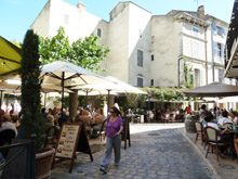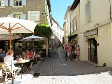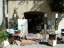 | Omdat de meeste toeristen iets eten of drinken zijn de winkelstraatjes minder vol… dat is wel prettig, dan zie je tenminste iets. Leuke kledingwinkeltjes en veel snuisterijen te koop. Wij hebben meer oog voor de geveltjes, vaak begroeid met klimplanten. Lourmarin behoort tot de mooiste dorpjes van Frankrijk. De winkeltjes, kunstgalerijen, exposities en de culturele bezienswaardigheden maken dit kleine dorpje net even anders. |