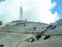 De Mont Ventoux lijkt nu toch wat meer in de zon te komen als we die oprijden. Meer wielrenners dan auto's op de weg. Een rit van 18 km naar boven. Prachtig uitzicht. En de bewolking is ook een foto waard. De top van de Mont Ventoux ligt op 1913 meter hoogte. Op die top bevindt zich een weerstation met een grote zendmast. |