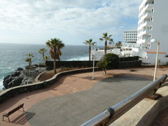 La Arena is de eerste stop. We ontdekken een voetpad langs de kustlijn. De golven zijn enorm hoog en klotsen tegen de rotsen.