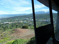 Onder dit uitkijkpunt is een restaurant gevestigd. Met grote ramen zodat het uitzicht goed te zien is. We drinken er koffie en worstelen daarna met de
