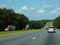 | Eentonige rit van Ocala naar Tallahassee. Veel groen langs de weg, vooral bomen. Het verkeer wordt drukker ter hoogte van Lake City. Daarna verder naar Tallahassee. Dat is nog best even een stukje rijden. Mooie bosrijke omgeving, afgewisseld door grasvlakten en braakliggend terrein. Maar vooral redelijk drukke wegen. Ca. 35 mijl voor Tallahassee tanken we en kopen een petje. Rond vijf uur arriveren we bij het hotel. Van de stad hebben we nog niet veel gezien, maar dat bekijken we morgenochtend nog wel. Relaxen op de mooie hotelkamer. |